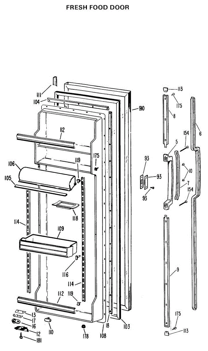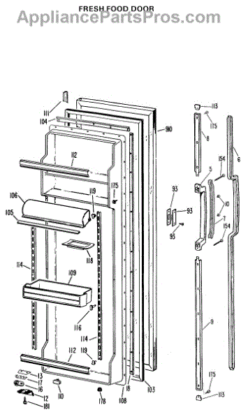 Parts for Ge TFX24RKB: 02 - Fresh Food Door Parts