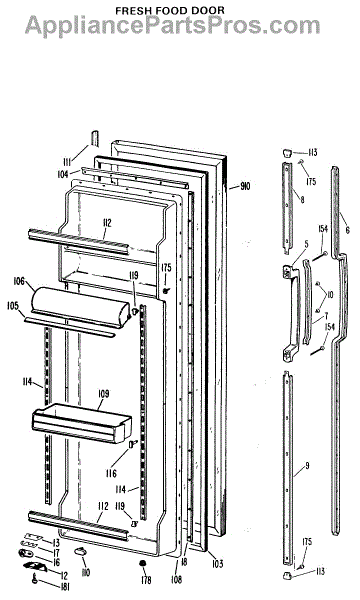 Parts for Ge TFX24RLC: 01 - Fresh Food Door Parts