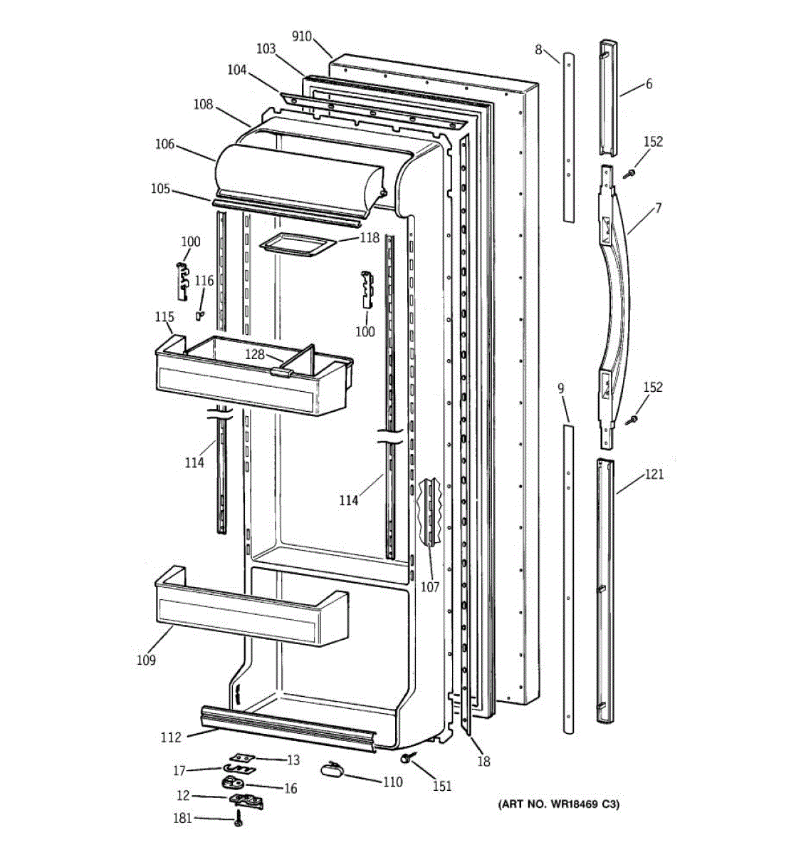 Parts for Ge TFX25CRBGAA: 02 - Fresh Food Door Parts