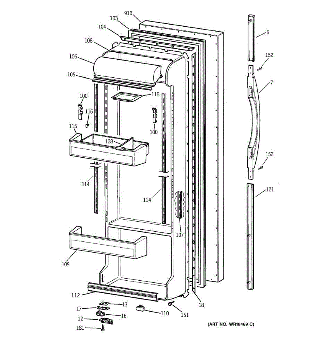 Parts for Ge TFX25KRCBAA: 02 - Fresh Food Door Parts