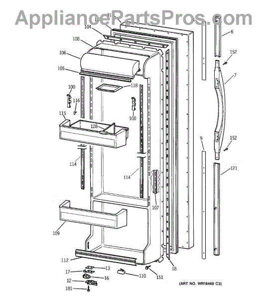 Parts for Ge TFX25PABBWW: 02 - Fresh Food Door Parts
