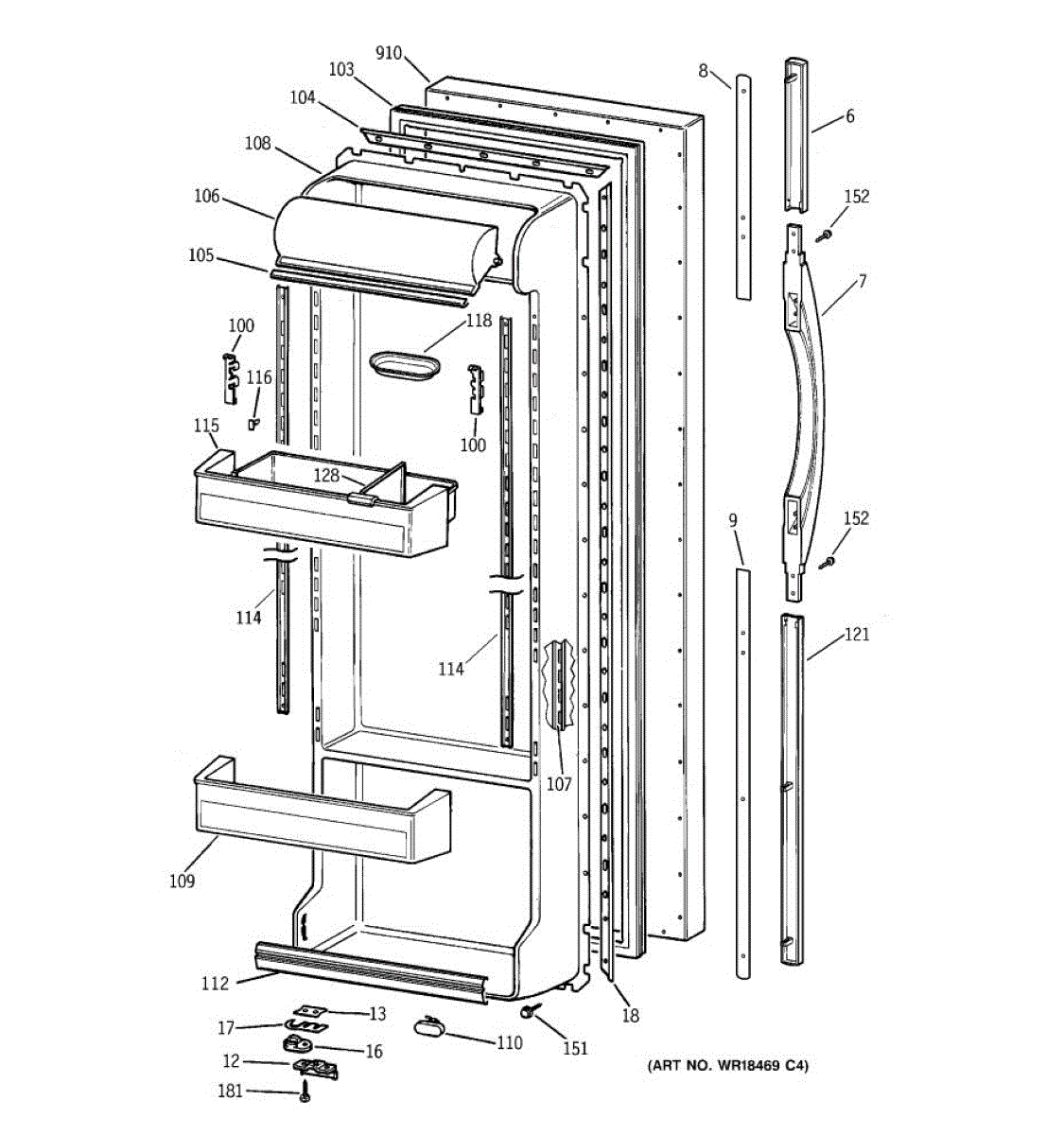 Parts for Ge TFX25PPBCAA: 02 - Fresh Food Door Parts