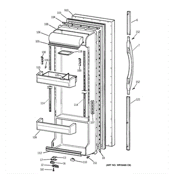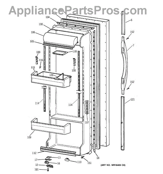 Parts for Ge TFX25VPBAAA: 02 - Fresh Food Door Parts
