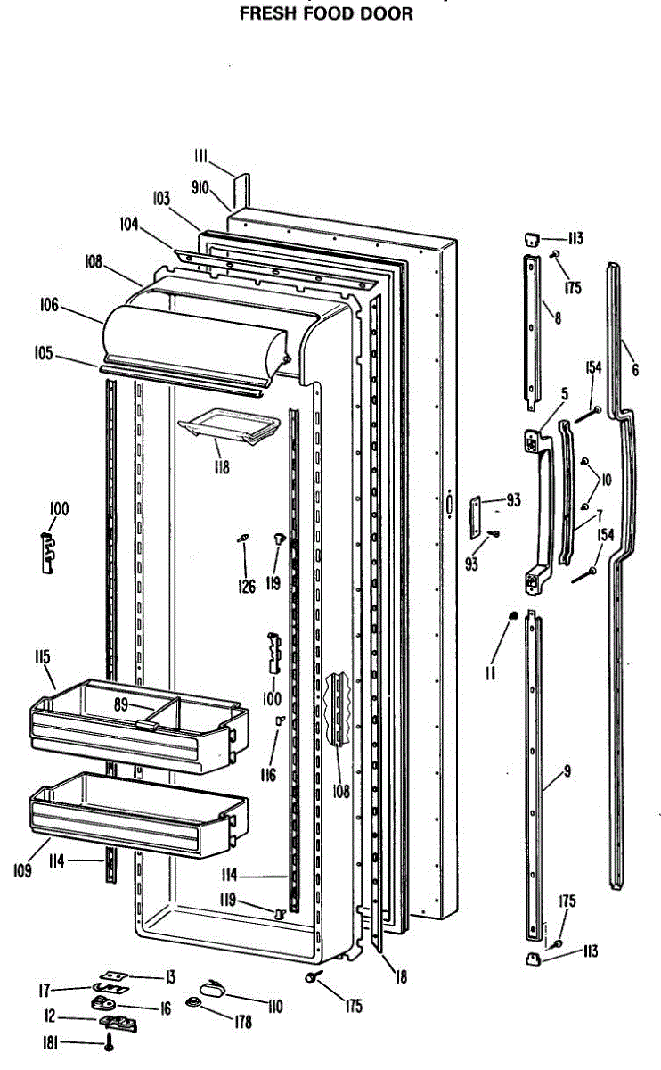 Parts for Ge TFX27ELP: 02 - Fresh Food Door Parts