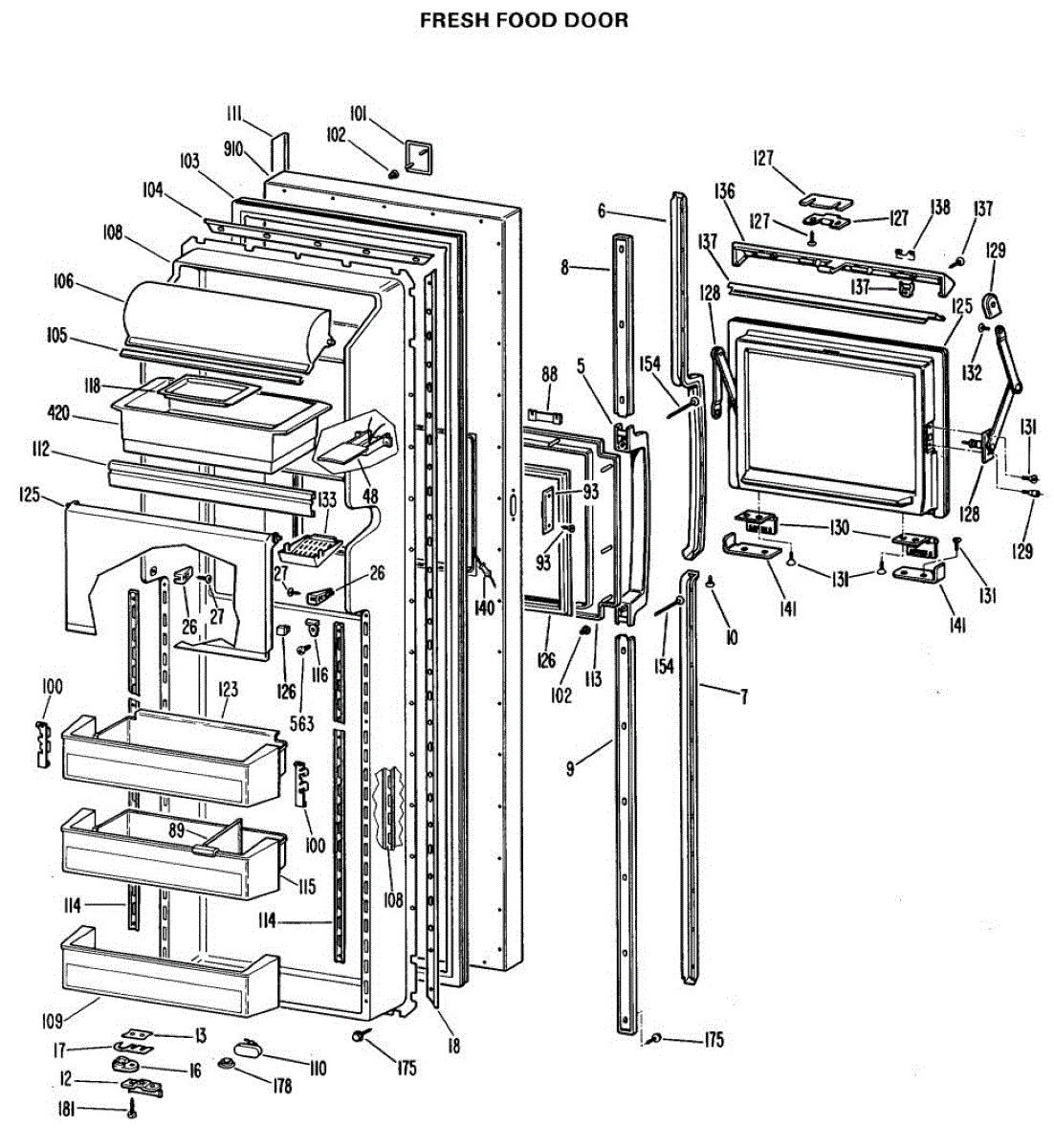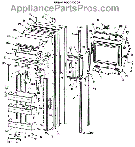 Parts for Ge TFX27FJB: 02 - Fresh Food Door Parts