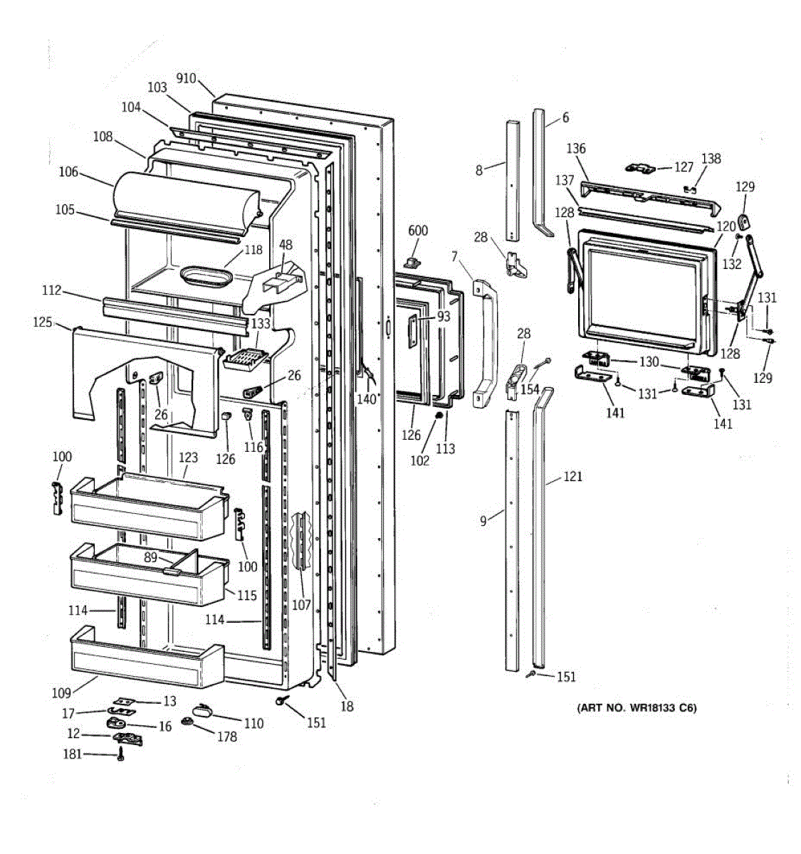 Parts for Ge TFX27PFXDWW: 02 - Fresh Food Door Parts