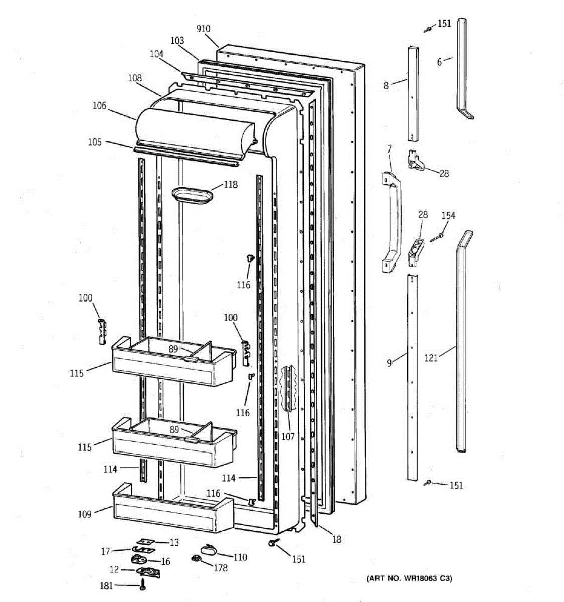 This replacement part is a handle bar, and it is intended for use in different types of appliances. This is a genuine replacement part made by General Electric. Each refrigerator typically has two handle bars which allow the user to open and closed the doors effectively and efficiently. A new handle bar might be needed if the current one is unable to stay connected to the door of the appliance. It is possible that the screws in this part can become stripped and therefore not hold the handle bar in place. It is best to replace this part immediately as the user might not be able to open the appliance at all if the handle becomes completely detached. This repair is simple and should only take a few minutes. Using a screwdriver, remove the old handles and replace the new ones securely on the door. This handle bar cover is sourced directly from the manufacturer. This is a genuine OEM replacement part and is sold individually.