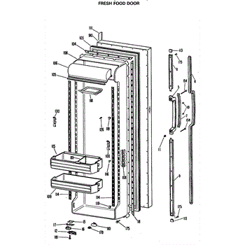 Parts for Ge TFX27RLL: 02 - Fresh Food Door Parts
