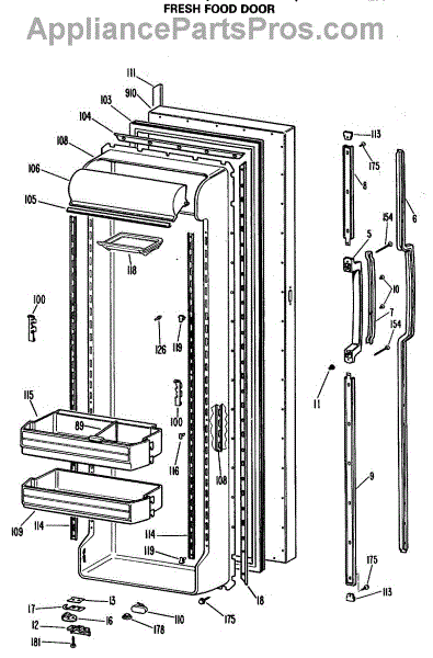 Parts for Ge TFX27VLL: 02 - Fresh Food Door Parts