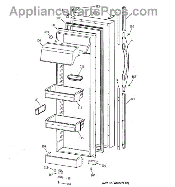 Parts for Ge TFX28PPCEWW: 02 - Fresh Food Door Parts