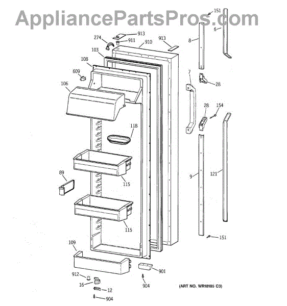 Parts for Ge TFX30PRYDBB: 02 - Fresh Food Door Parts