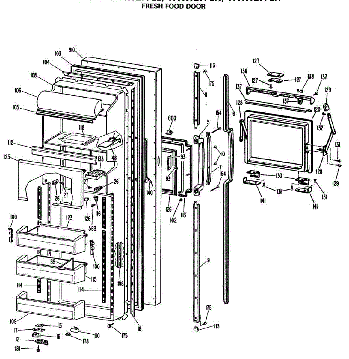Parts for Ge TFXW27FLL: 02 - Fresh Food Door Parts