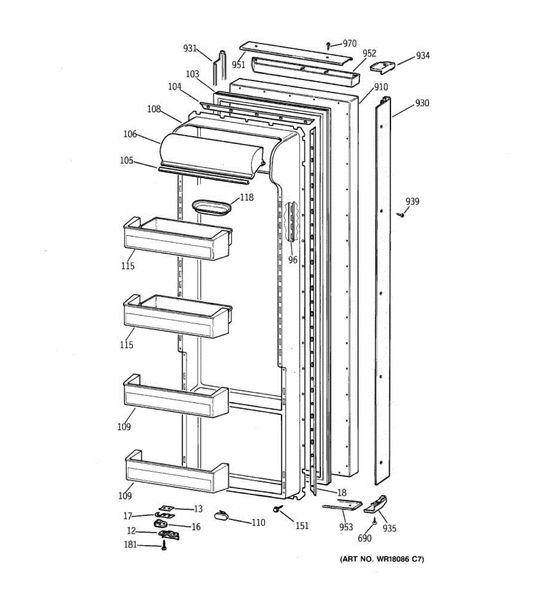 White plastic trim piece that covers the bottom edge of your refrigerator's fresh food door. Replace if cracked, chipped, discolored, or missing.