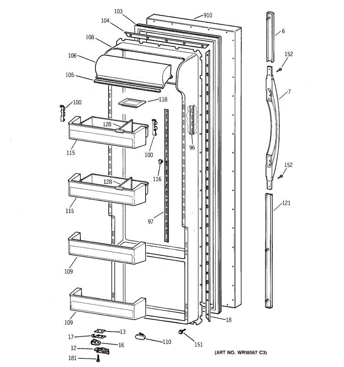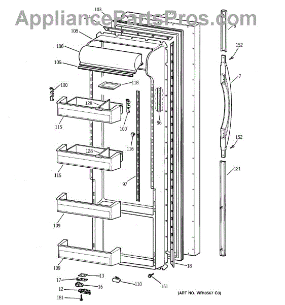 Replacement door handle for GE side-by-side refrigerators. Install this handle when your original is cracked, broken, discolored, or worn from years of use.