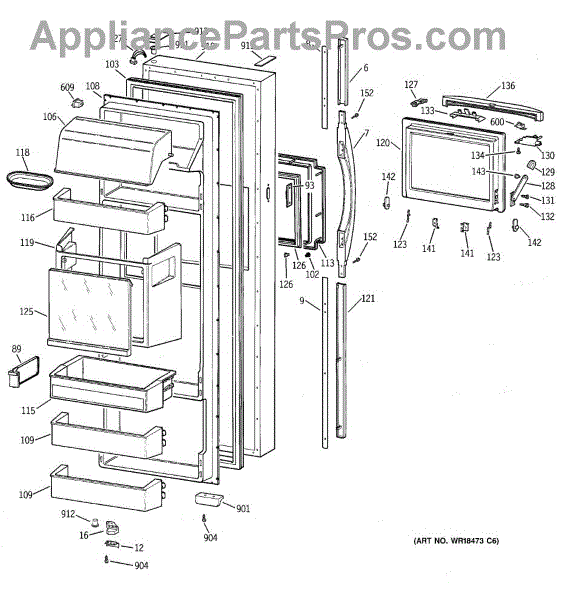 Parts for Ge TPG24PFBAWW: 02 - Fresh Food Door Parts