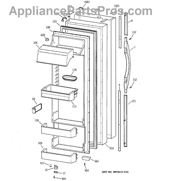 Parts for Ge TPG24PRCCBS: 02 - Fresh Food Door Parts