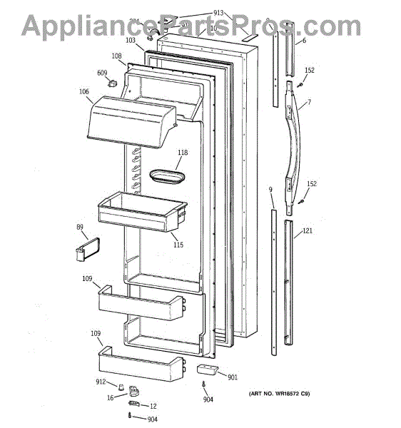Parts for Ge TPG24PRCEBB: 02 - Fresh Food Door Parts