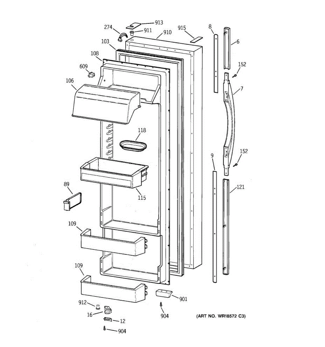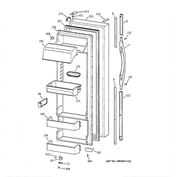 Parts for Ge TPJ24PRBBWW: 02 - Fresh Food Door Parts