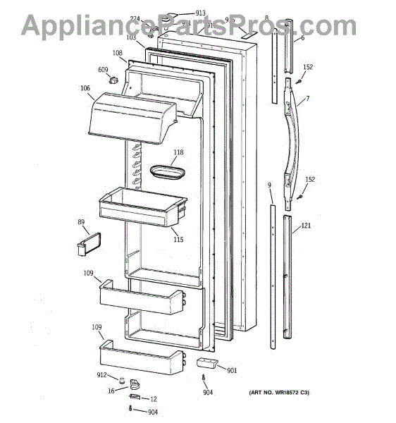 Parts for Ge TPJ24PRBCAA: 02 - Fresh Food Door Parts