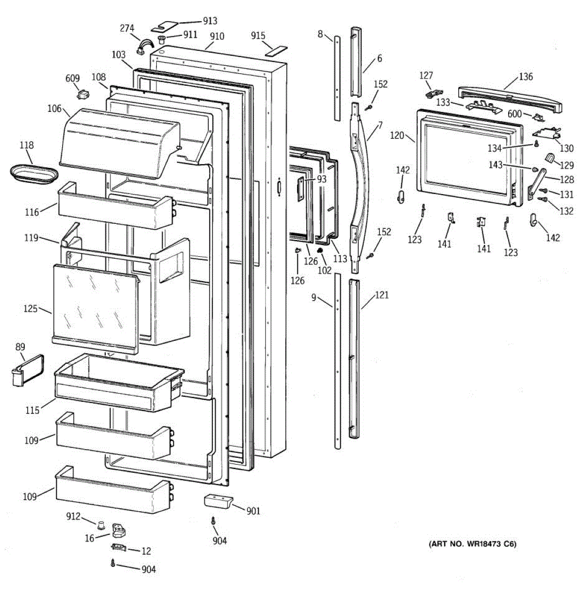 Parts for Ge TPK24PFBCWW: 02 - Fresh Food Door Parts