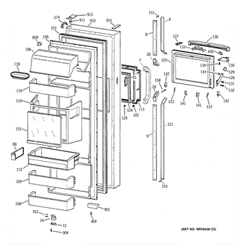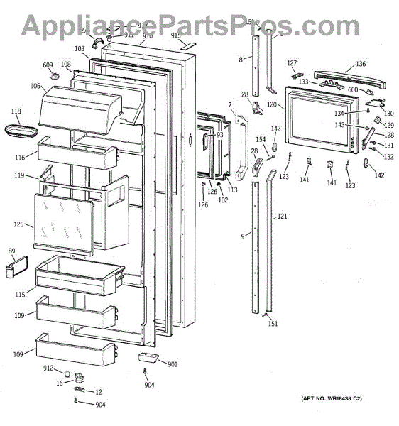 Parts for Ge TPK24PFZCAA: 02 - Fresh Food Door Parts