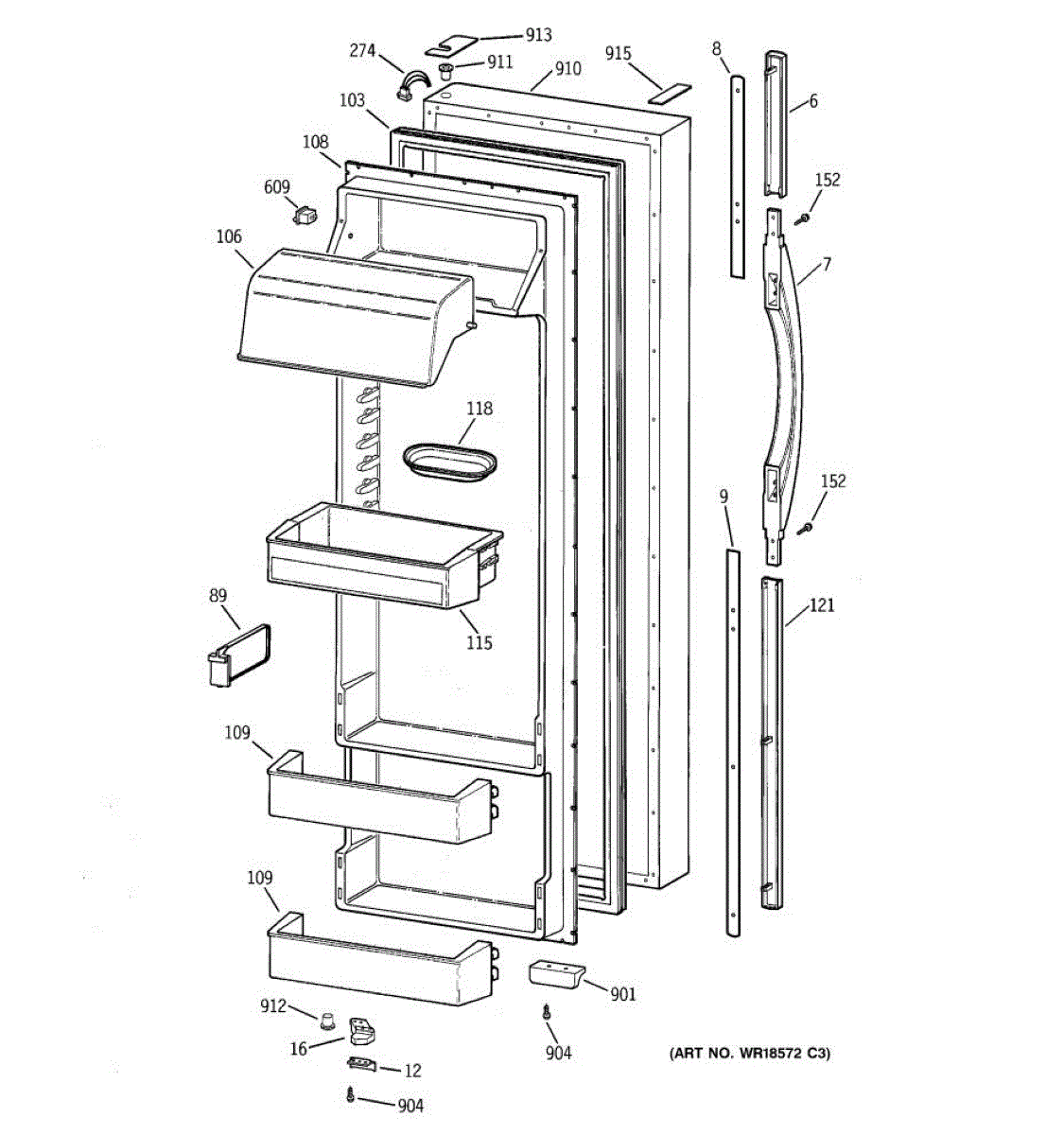 Parts for Ge TPK24PRBCWW: 02 - Fresh Food Door Parts