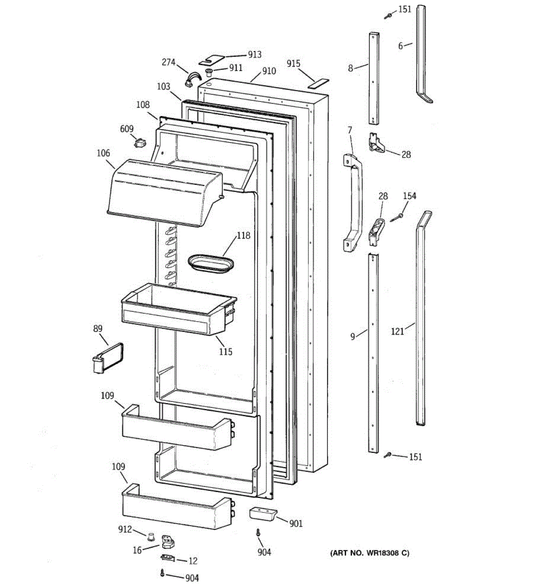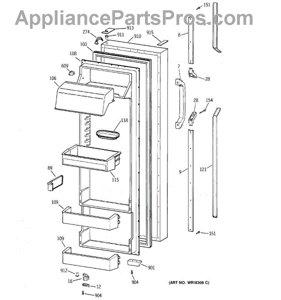 Parts for Ge TPK24PRZAAA: 02 - Fresh Food Door Parts