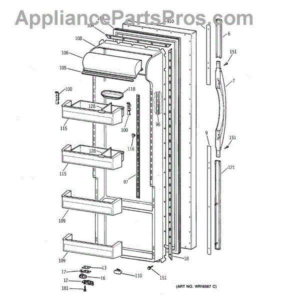Parts for Ge TPX21PRBABB: 02 - Fresh Food Door Parts