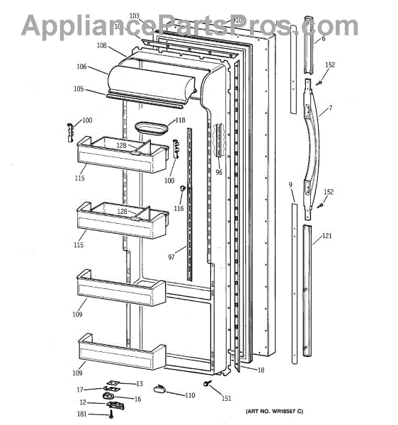 Parts for Ge TPX21PRBEAA: 02 - Fresh Food Door Parts