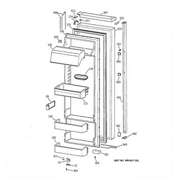 Parts for Ge TPX24BIBCBB: 02 - Fresh Food Door Parts