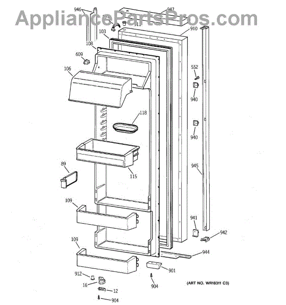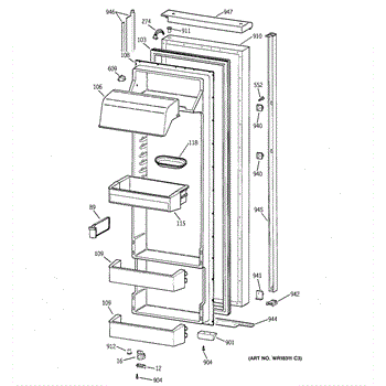 Refrigerator door bottom trim piece that finishes the lower edge of the freezer door. Replace if cracked, broken, or missing to restore appearance.