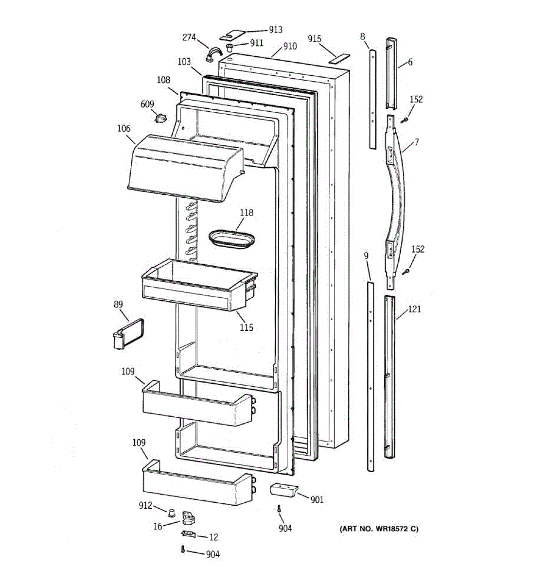 Parts for Ge TPX24PPBBAA: 02 - Fresh Food Door Parts