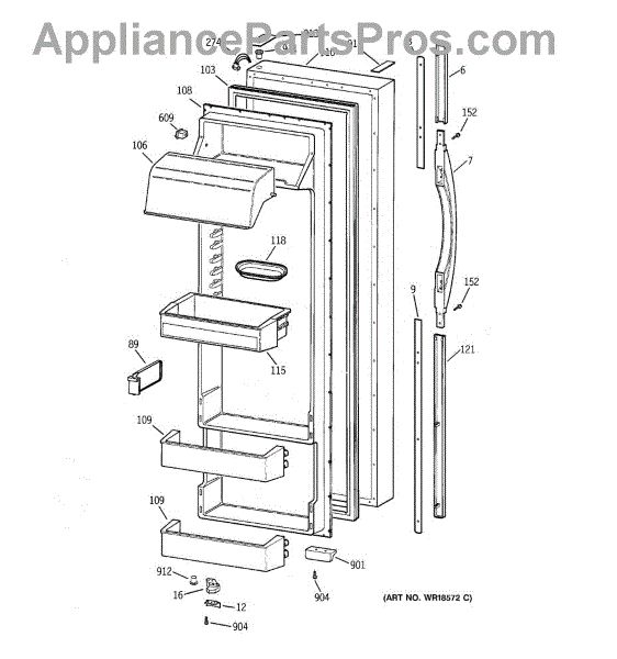 Parts for Ge TPX24PRBCWW: 02 - Fresh Food Door Parts