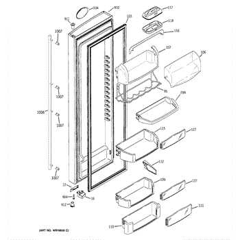 The Door Bin is an OEM part for GE refrigerators. It is a convenient storage compartment located on the interior of the refrigerator door, designed to hold and organize smaller items such as condiments, jars, or beverages.