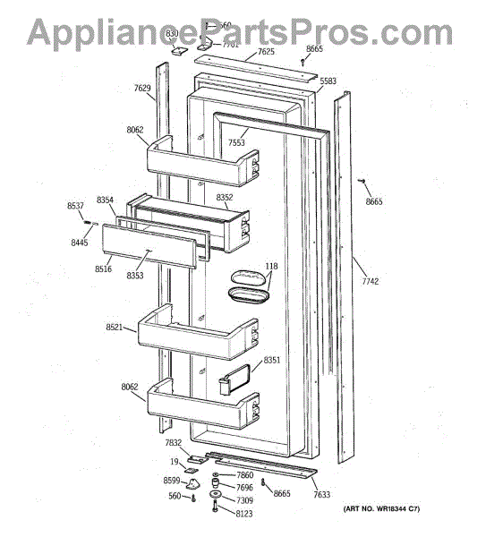 This is the fresh food side bottom door hinge. For top door hinge use WR13X633.