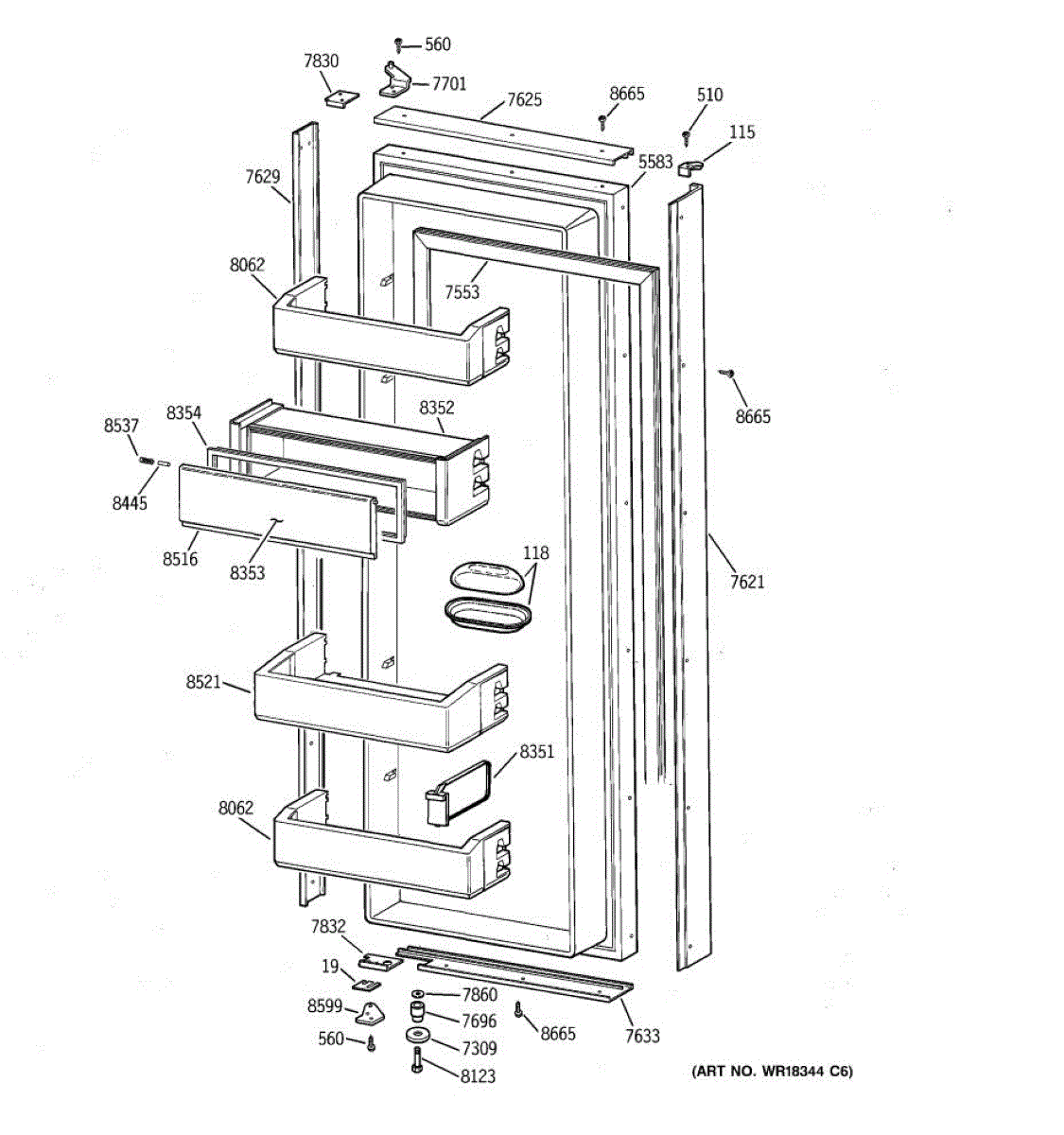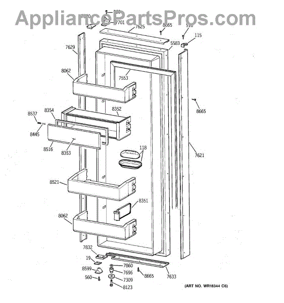 Replacement dairy door and tray for refrigerator door storage. Installs on the inner door to hold butter, cheese, and dairy products. Needed when cracked or broken.