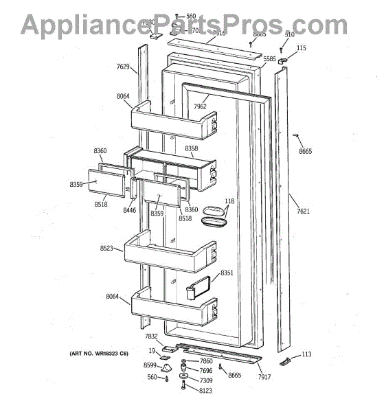For fresh food door top handle endcap or freezer door bottom handle endcap.