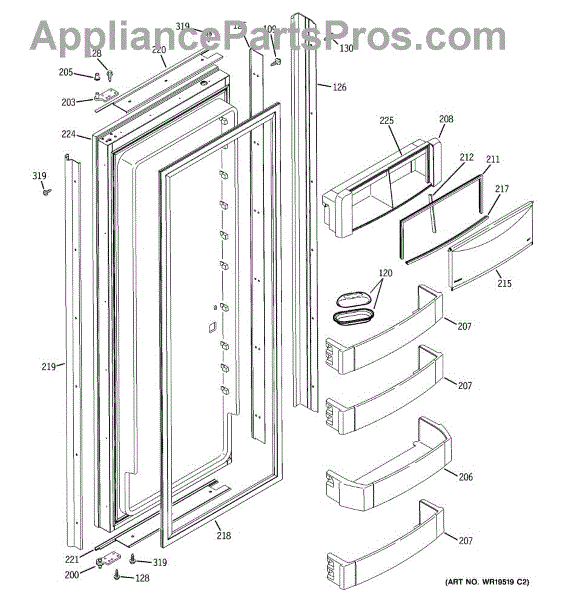 Parts for Ge ZISB360DRH: 03 - Fresh Food Door Parts