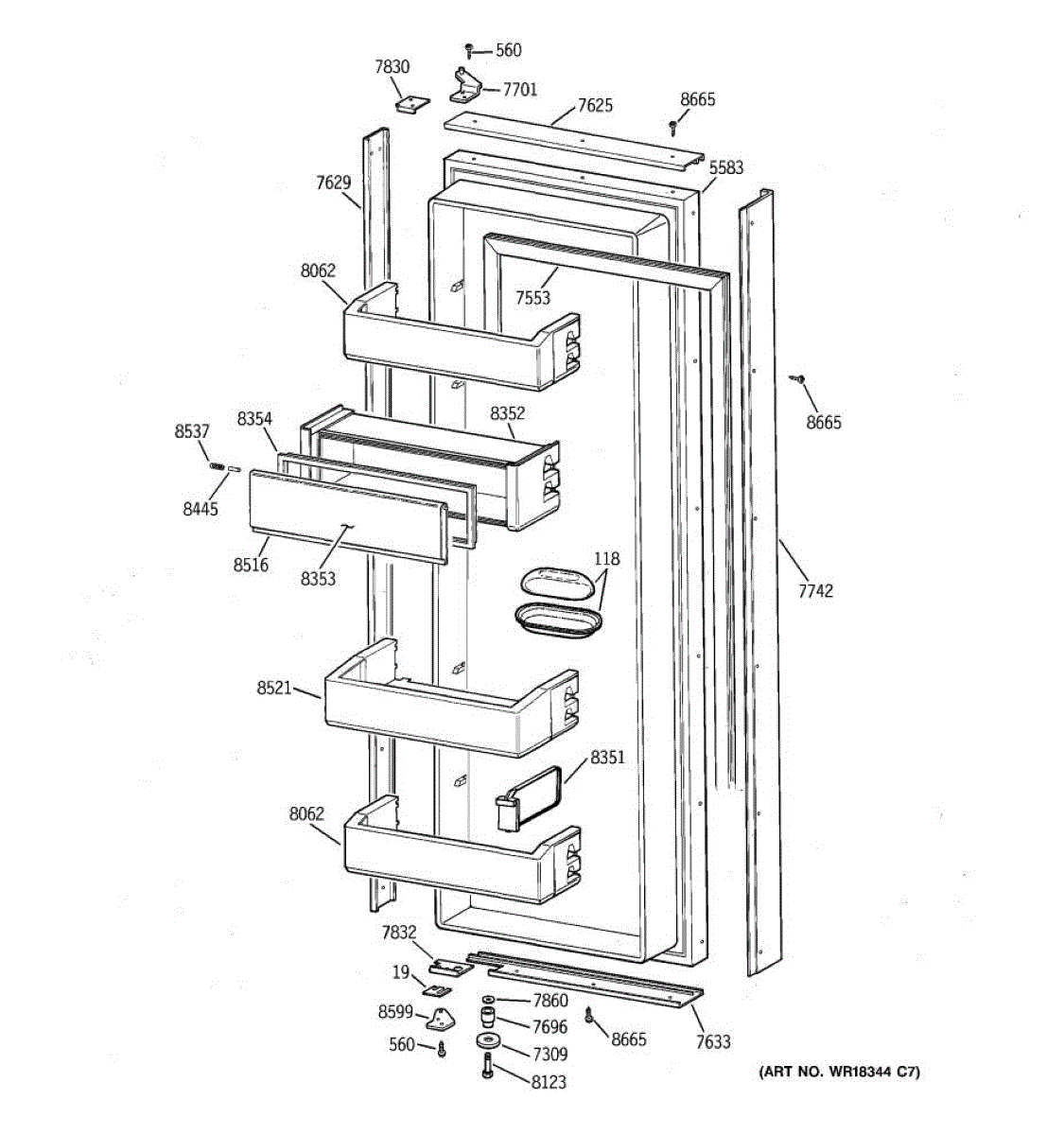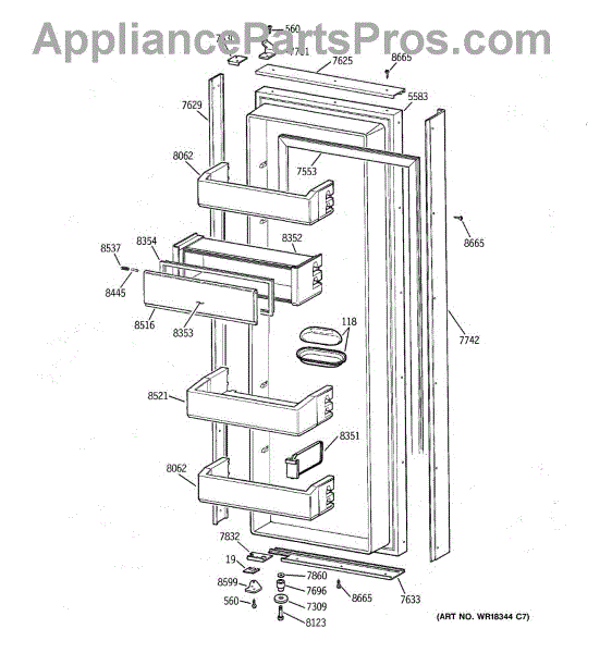 This is the fresh food side bottom door hinge. For top door hinge use WR13X633.