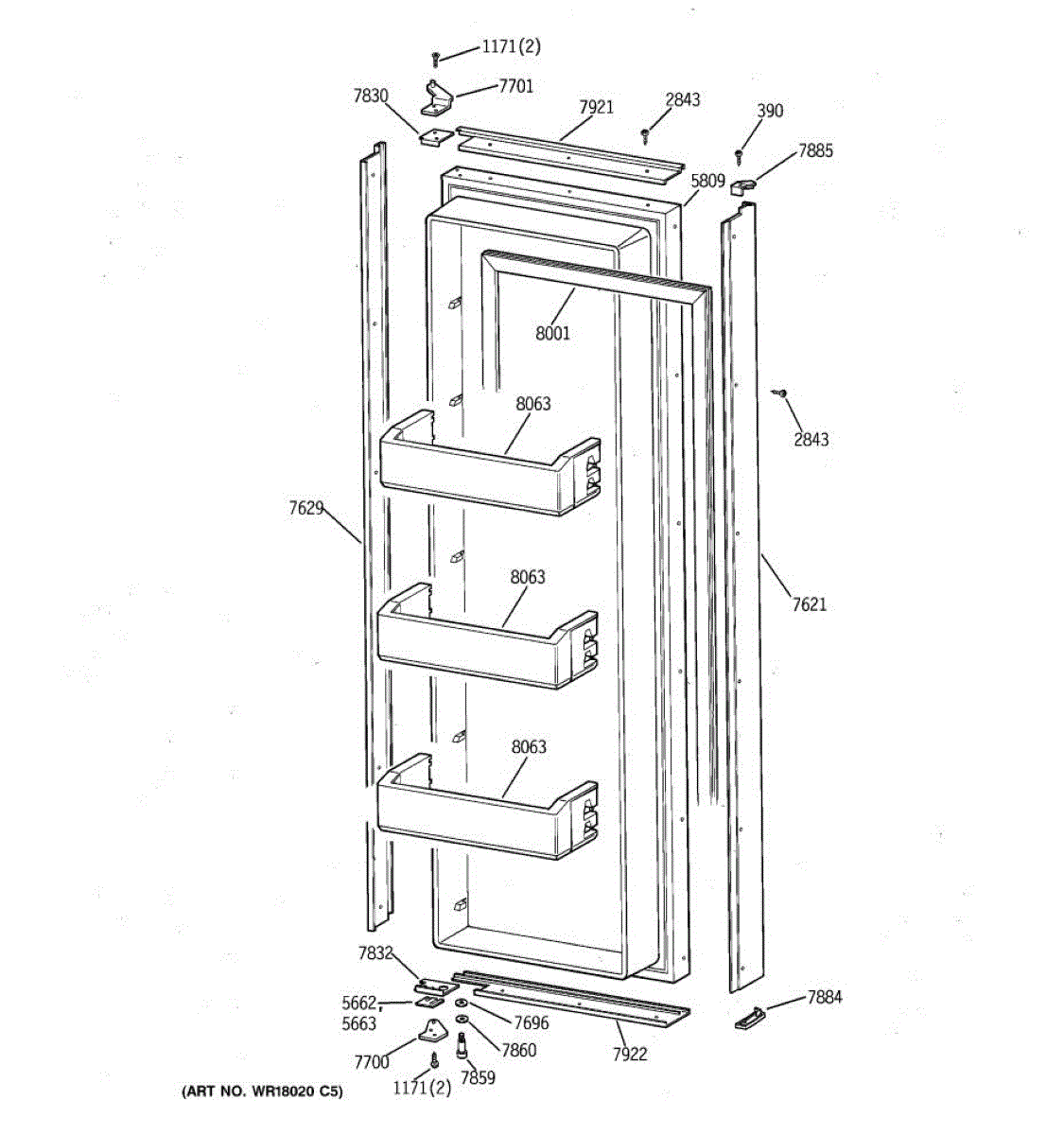 Hinge kit for 36/42/48 inch side by side GE/Monogram refrigerators.