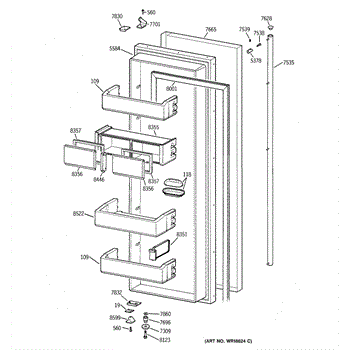 Dairy and utility gasket for 42 inch GE/Monogram refrigerators.