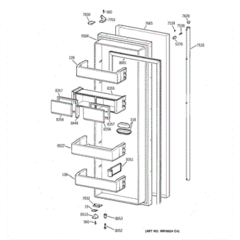 Dairy and utility gasket for 42 inch GE/Monogram refrigerators.