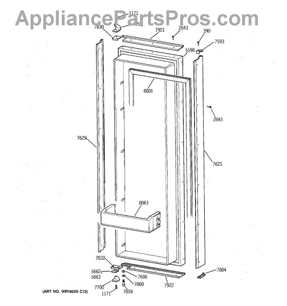 Hinge kit for 36/42/48 inch side by side GE/Monogram refrigerators.