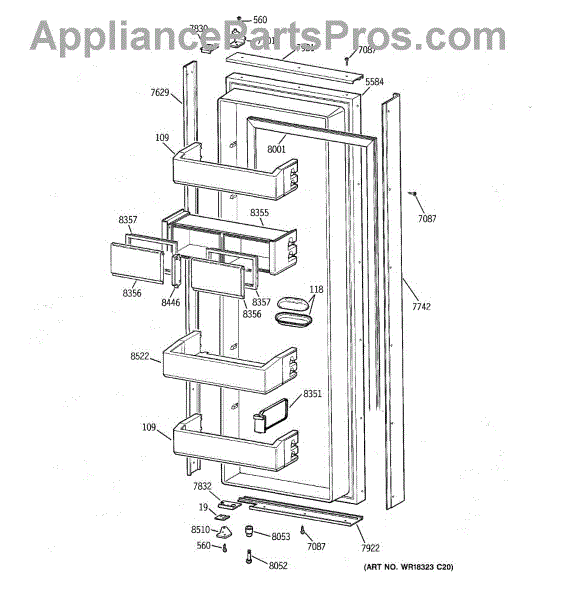 Dairy and utility compartment for 42 inch GE/Monogram refrigerators.