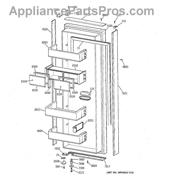 For fresh food door top handle endcap or freezer door bottom handle endcap.