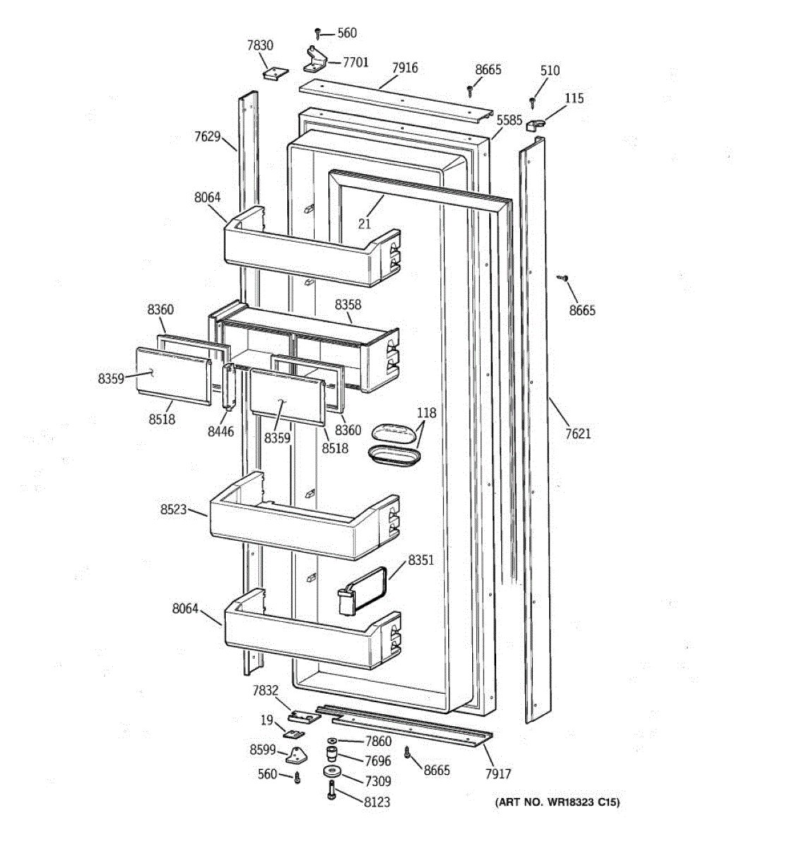 Dairy and utility compartment divider for 42 and 48 inch GE/Monogram refrigerators.