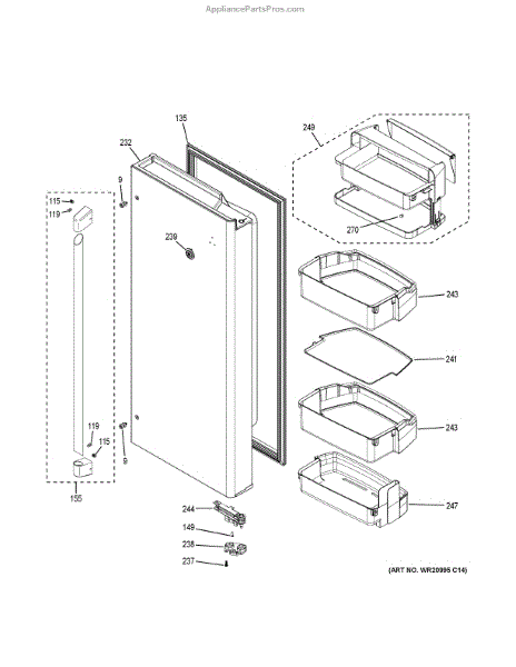 Right hand door for refrigerators. Provides access to fresh food compartment. Replace if cracked, damaged, or broken. Includes mounting points for handle.