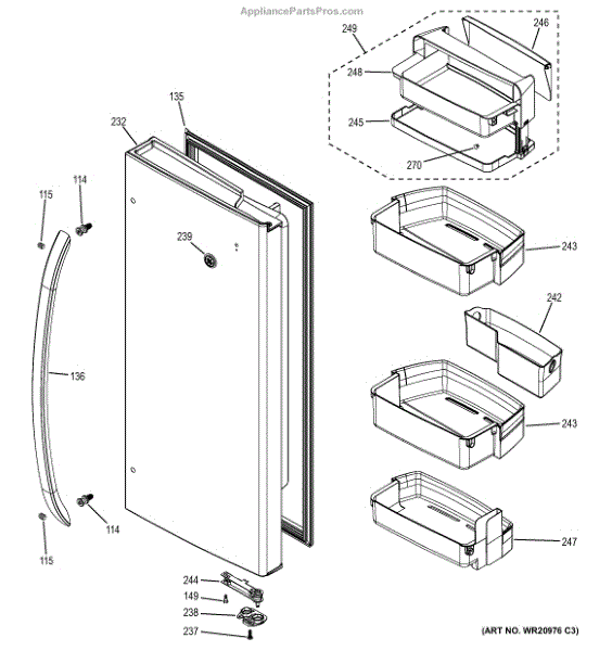 The Dairy Door bin is an OEM replacement part for Frigidaire refrigerators. It is specifically designed to provide a designated storage space for dairy products like butter, cheese, and yogurt. This bin is attached to the refrigerator door and is covered to maintain the optimal temperature and humidity levels to keep dairy products fresh. Common causes of a bad dairy door bin include regular wear and tear, accidental drops, or impacts during loading and unloading. Symptoms of a bad dairy tray door include: