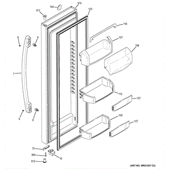 Replacement door bin for side-by-side refrigerators. Mounts inside the door to organize condiments, jars, and beverages. Replace if cracked or broken.