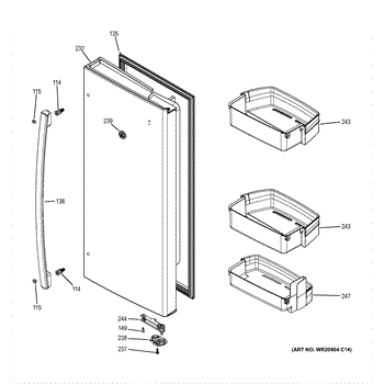 Right door bin for bottom-mount refrigerators. Mounts inside the door to organize beverages, condiments, and small containers. Replace if cracked or missing.